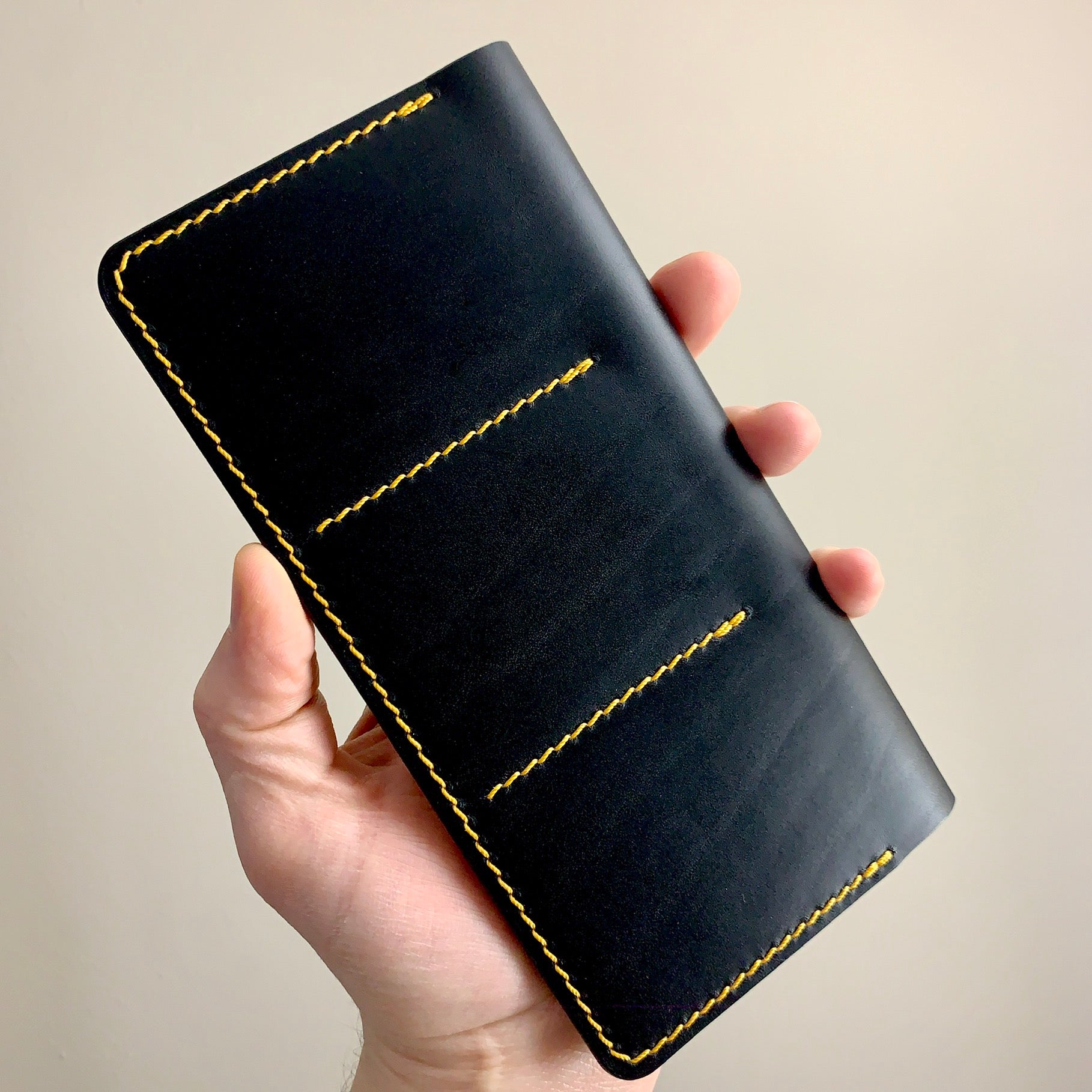 A wallet for those who prefer something bigger, but not too bulky, this one has 3 card pockets that can each fit 2+ cards, as well as a full-length cash slip.