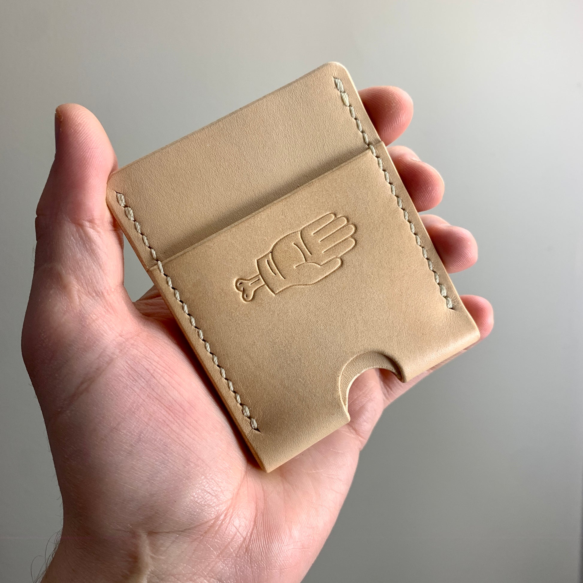 An updated version of the original Tadpole Card Slip, this replaces the cash strap with front and rear pockets. Now you can keep a quick-draw card, and hold your quartered cash a little tighter.